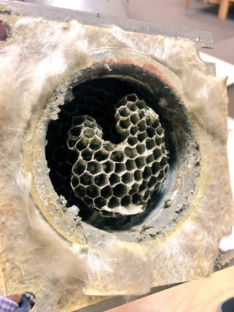 Just when we think we’ve seen it all, our engineer found this bee’s nest in a boiler flue. Save